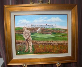 The golf art includes Bethpage, Shinnecock, Olde Vine, Winged Foot and famous golfers. The local scenes are Riverhead, The Big Duck, Montauk and Fire Island Lighthouses, Davis Park, Sayville, Smithtown Bull, Roosevelt and Aqueduct Racetracks and the Statue of Liberty. There is something for every ones price range from $3 note cards, small prints $10, limited edition prints $39 and up, giclees on canvas 16”x 20” $300, larger giclees are available up to 8 feet wide. A few originals are still available. They are usually sold before they are painted. Personalization is available on gifts for any occasion. We also do our own framing to fit in any décor at very, very reasonable prices.